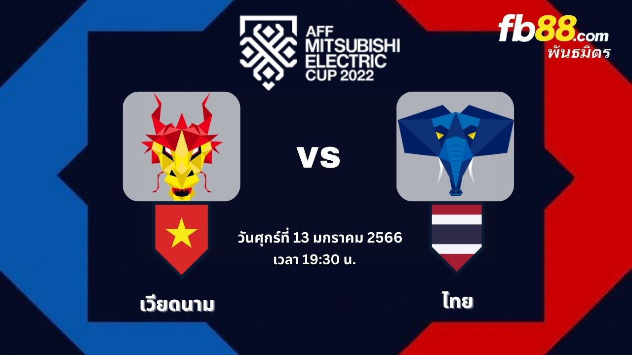 เวียดนาม พบ ไทย ในเอเอฟเอฟ มิตซูบิชิ อิเล็คทริค คัพ 2022 วันศุกร์ที่ 13 มกราคม 2566 เวลา 19:30 น.